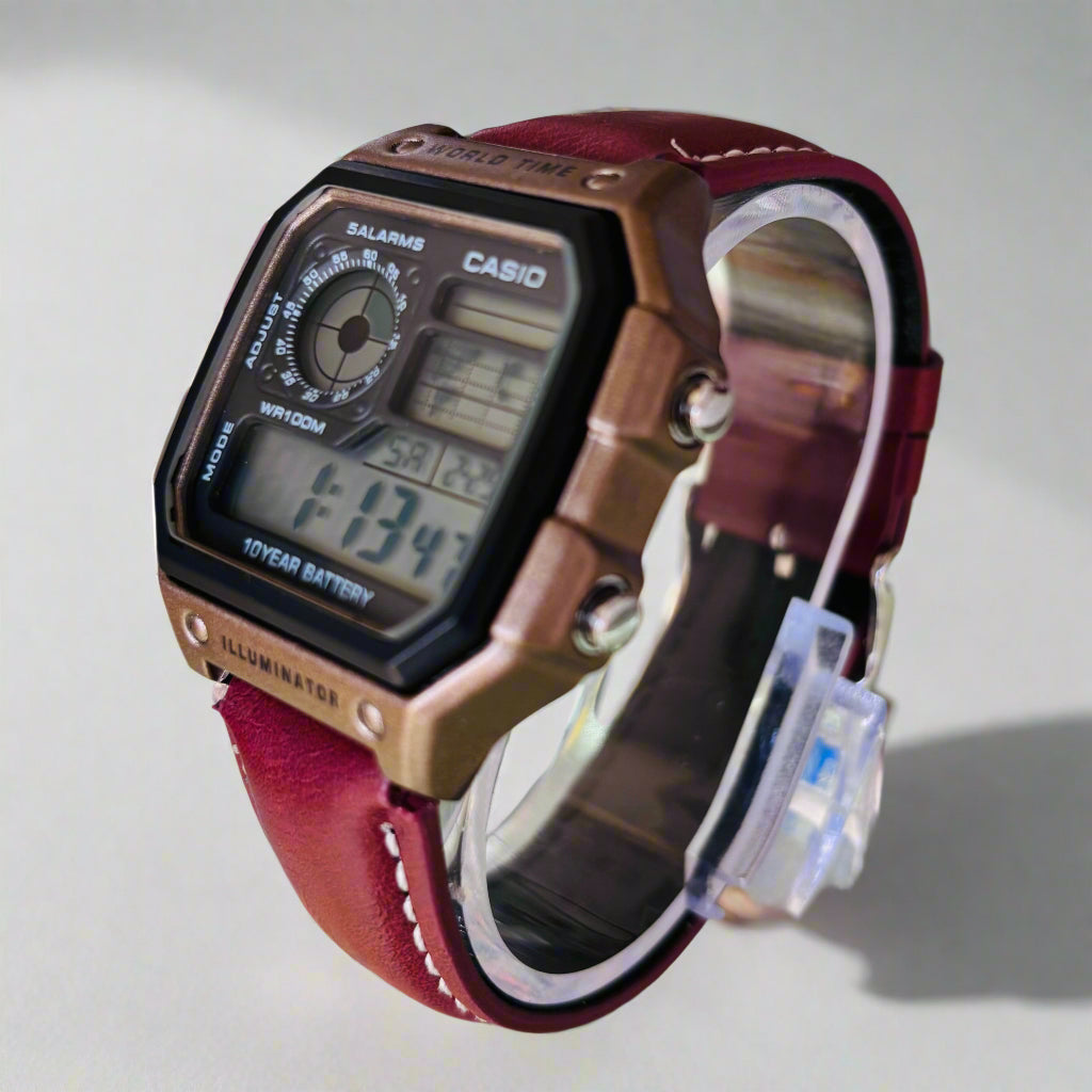 When you get the AE-1200 in brown strap + bronze-color (bronze-tone) case, you are basically looking at a more “stylish / dress-casual” variant compared to the basic black/resin-strap ones.